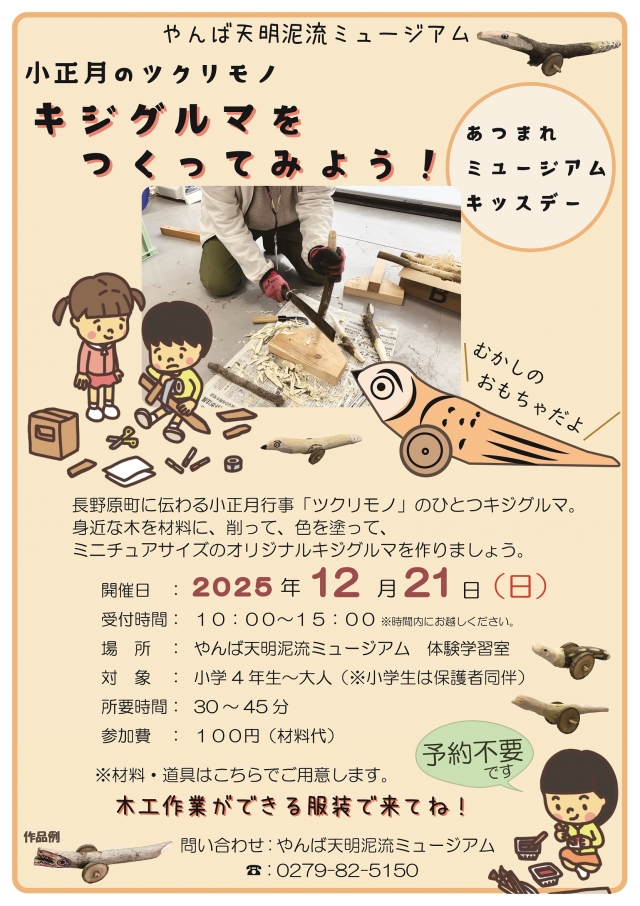 - あつまれ!ミュージアムキッズデー「小正月のツクリモノ キジグルマをつくってみよう!」【長野原町やんば天明泥流ミュージアム】2025年11月21日